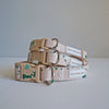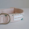 This Harness features real acrylic paint that has been splashed on, therefore the splash pattern will vary greatly for each collar. Acrylic paint has been mixed with fabric medium to remain flexible and permanent.  Adjustable for an ideal fit. All come with a cream base and cream buckle, along with silver details.