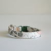 Introducing the Vintage Floral Cat Collar! Add a touch of timeless charm to your furry friend’s look with our Vintage Floral Cat Collar. This collar features an elegant look of floral design. Features a cream background fabric with pops of coral, white and dark green floral designs, silver details and a forest green buckle.